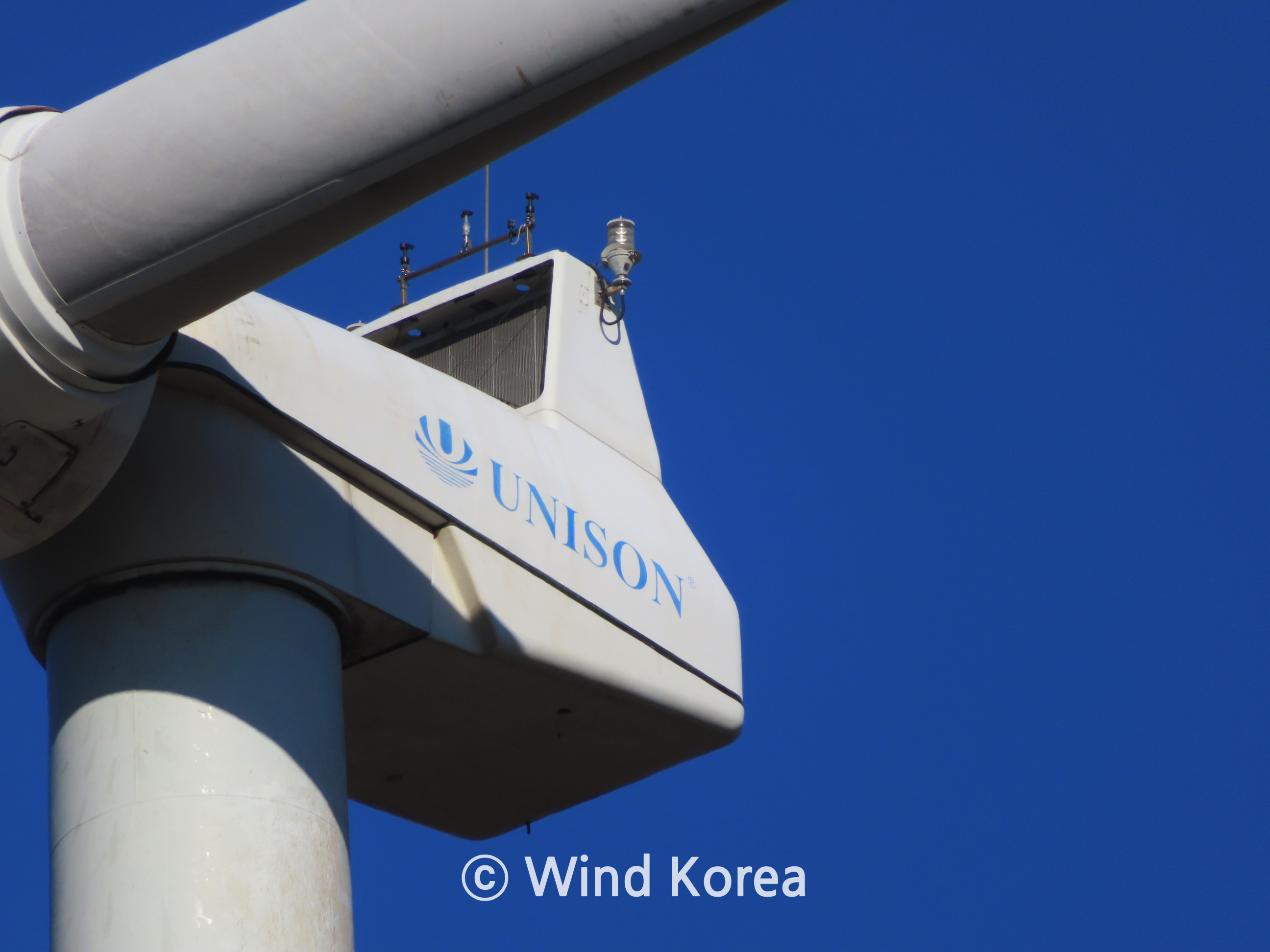 지금도 우리나라 풍력발전산업을 주도하고 있는 유니슨은 2004년 당시, 영덕풍력발전단지의 설계, 건설, 조달과 같은 전 과정을 이끌었습니다. 풍력발전 나셀 옆부분에 유니슨이라는 로고가 큼지막하게 보입니다.
