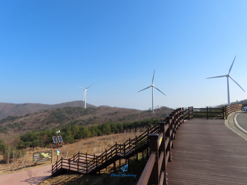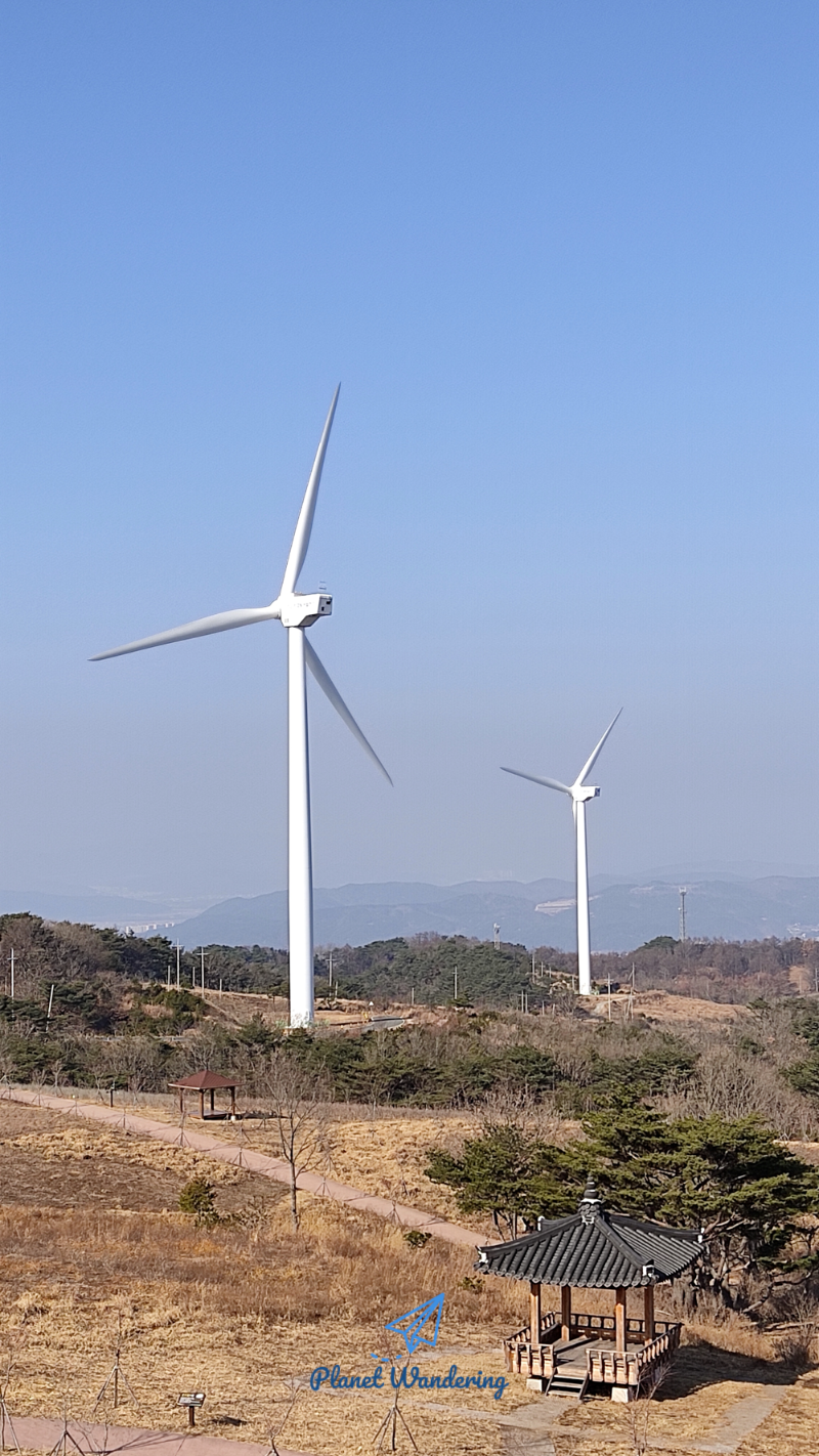 풍력발전소가 한눈에 내려다보이는 정자 경풍루, 바람길 산책로, 피크닉 테이블 등을 조성하고 연중 일반인에게 개방하고 있으며, 바람의 언덕은 특히 일몰과 노을이 아름다운 곳으로 정평이 나 있습니다. ⓒ WindKorea