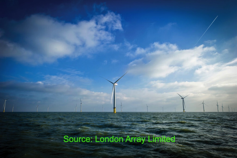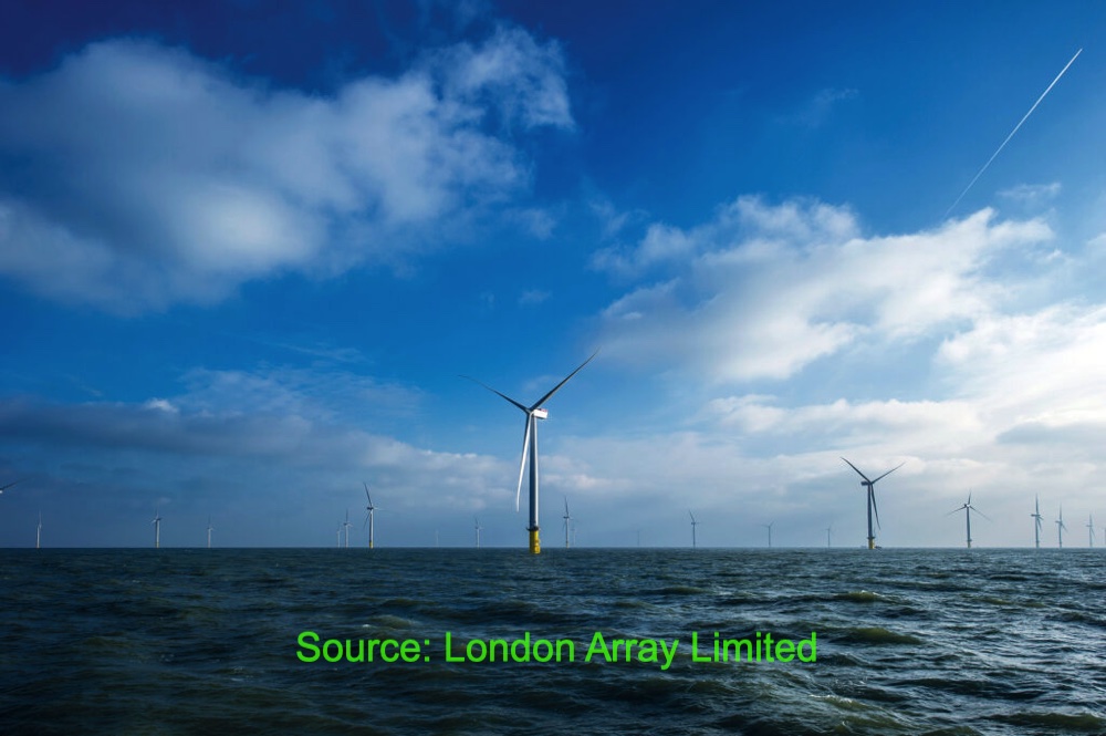 런던어레이는 3.6MW 규모의 윈드터빈 175개를 가동하여 연간 630MW의 전력을 생산하며, 이는 영국의 58만 4천 가구가 충분히 사용할 수 있는 전력이며, 런던어레이가 위치한 켄트주 전체 가구의 2/3가 사용 가능한 전력입니다. 런던어레이는 유해한 이산화탄소 배출을 연간 92.5만 톤 감소하는 효과 또한 만들어내고 있습니다.