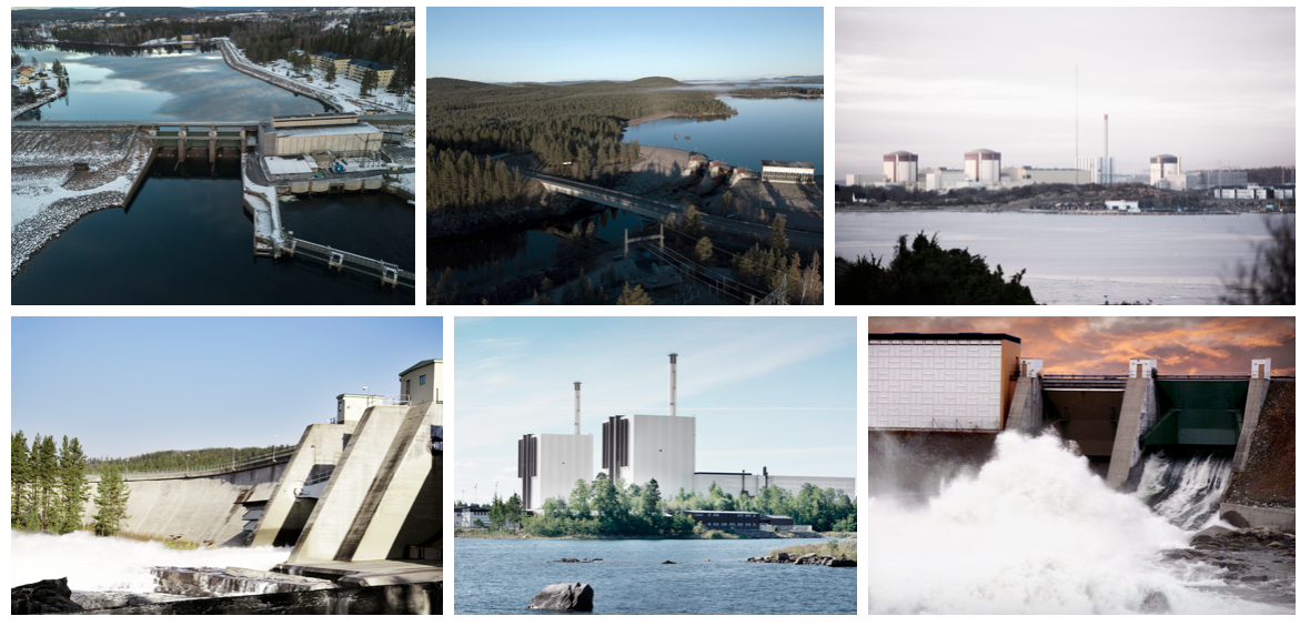 아래 사진들은 바텐팔의 주요 수력발전 및 원자력발전 플랜트로 왼쪽부터 Boden hydro power plant / Akkats power plant / Ringhals / Stadsforsen Power Station / Forsmark nuclear power plant / Porjus hydro power plant 입니다.